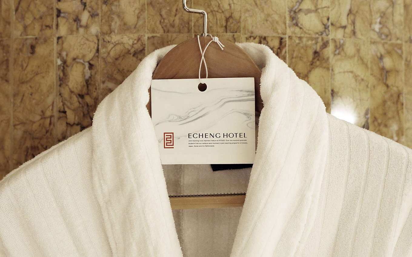怡程酒店,Logo形如一條朱砂紅的東方龍, Logo造型隱含有怡程的英文首字E字結構的咬合,E-EASTERN,代表東方,凸顯東方情懷和西方現代相結合的品牌特征。